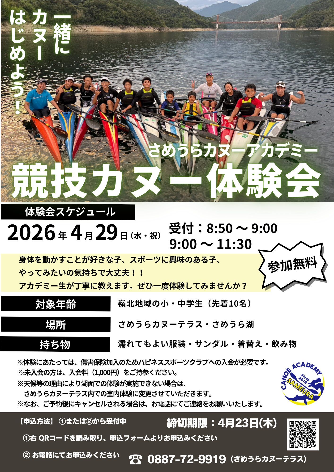 さめうらカヌーアカデミー競技カヌー体験会開催!【4月29日(水・祝)】